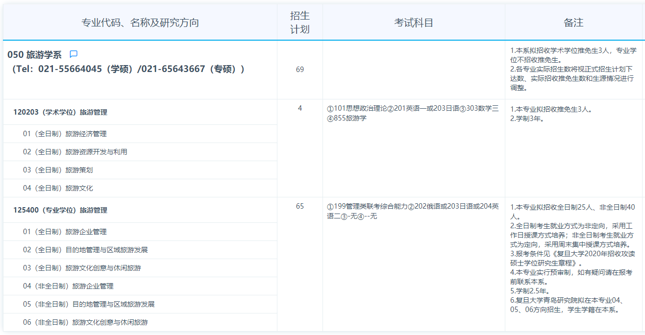 复旦大学考研辅导班:复旦大学2021年旅游学系研究生招生专业目录