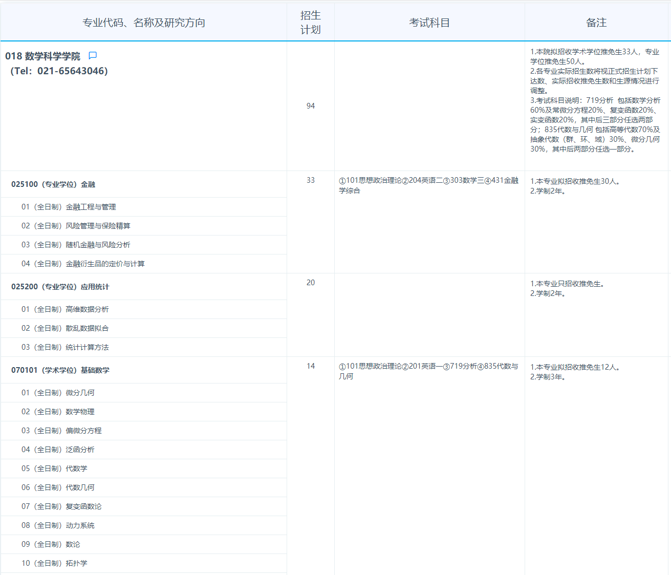 复旦大学考研辅导班:复旦大学2021年数学科学学院研究生招生专业目录