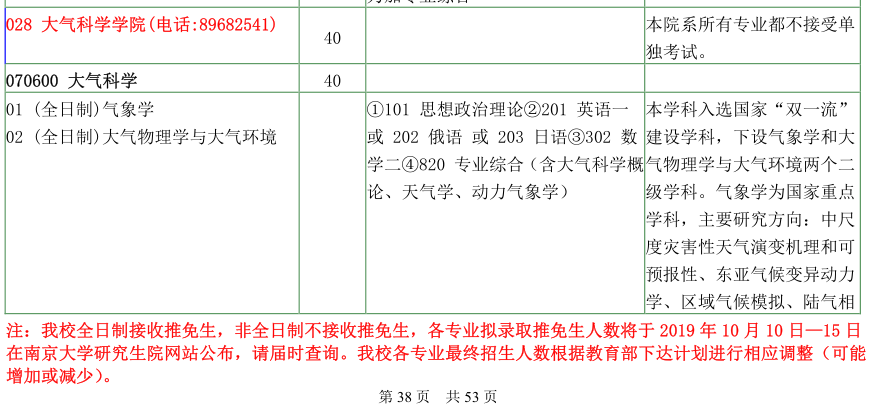南京大学考研辅导班:南京大学大气科学学院2020年硕士研究生招生目录
