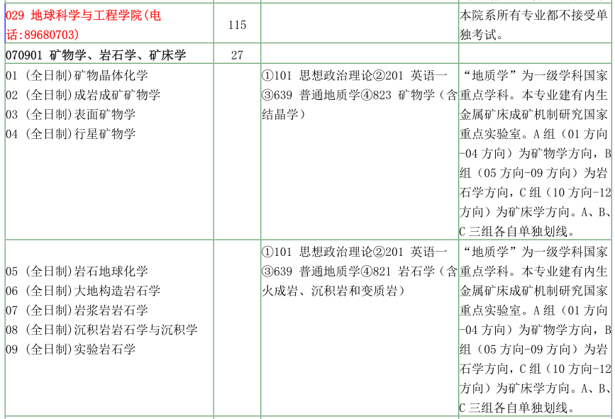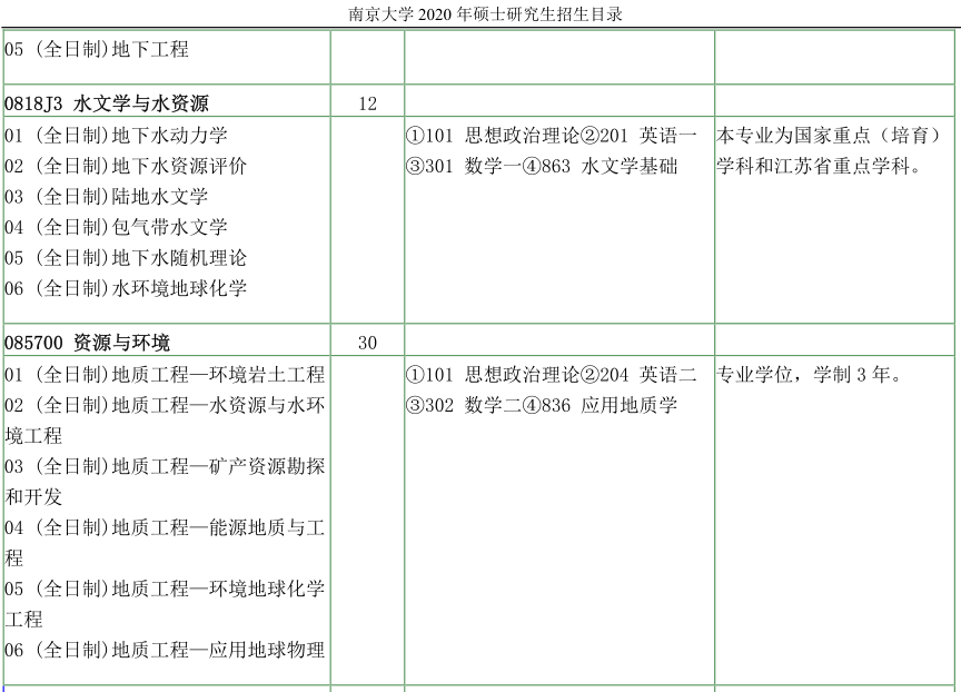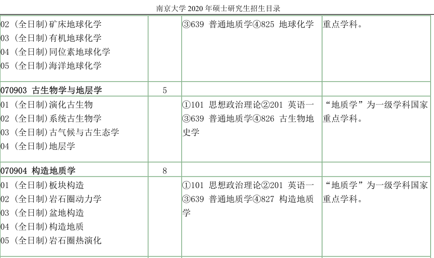 南京大学考研辅导班:南京大学地球科学与工程学院2020年硕士研究生招生目录