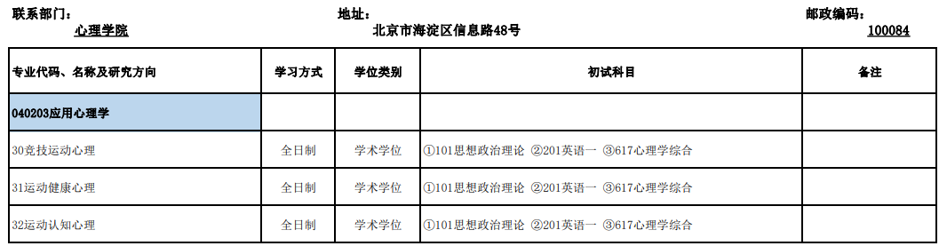 北京体育大学考研辅导班:北体心理学院2020年考研招生目录