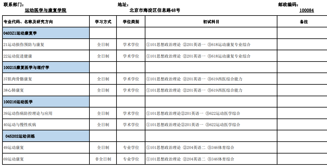 北京体育大学考研辅导班:北体运动医学与康复学院2020年考研招生目录