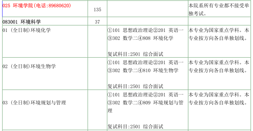 南京大学考研辅导班:南京大学环境学院2020年硕士研究生招生目录