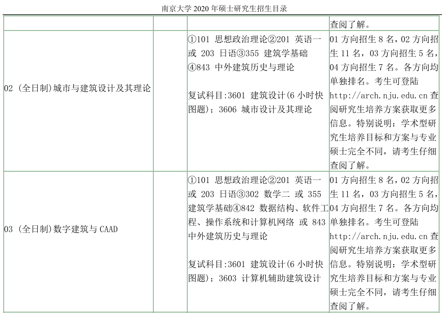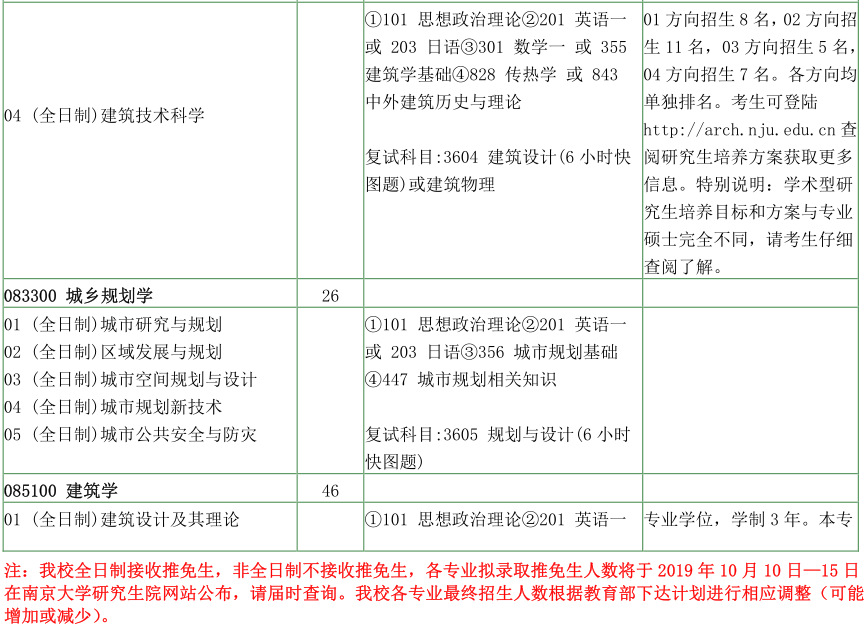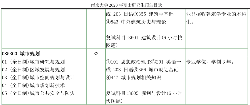 南京大学考研辅导班:南京大学建筑与城市规划学院2020年硕士研究生招生目录