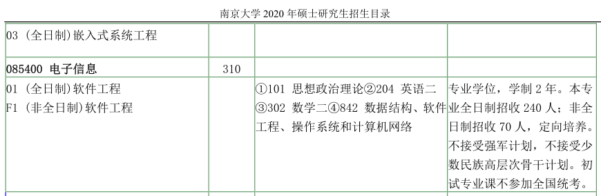 南京大学考研辅导班:南京大学软件学院2020年硕士研究生招生目录
