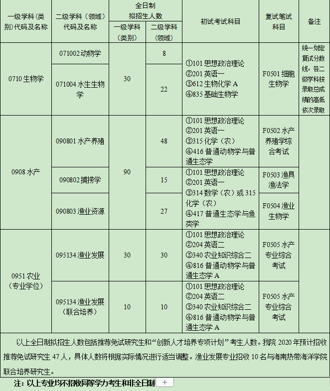 中国海洋大学考研辅导班:2020中国海洋大学水产学院招生专业目录