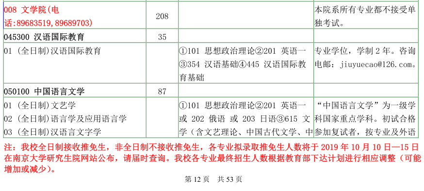南京大学考研辅导班:南京大学文学院2020年硕士研究生招生目录