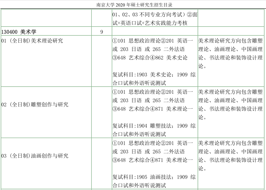 南京大学考研辅导班:南京大学艺术学院2020年硕士研究生招生目录
