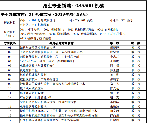 西电考研辅导班:2020西安电子科技大学机械招生专业目录
