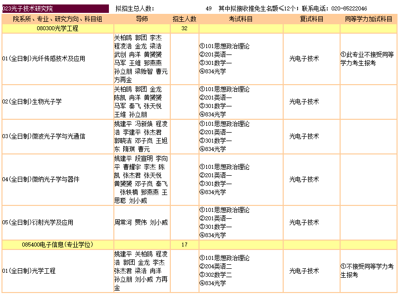 暨南大学考研辅导班:暨南大学2020年光子技术研究院硕士研究生招生目录