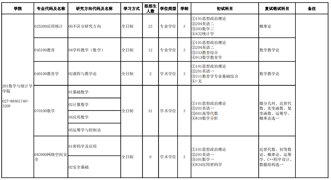 湖北大学考研辅导班:2020年硕士研究生招生数学与统计学学院专业目录