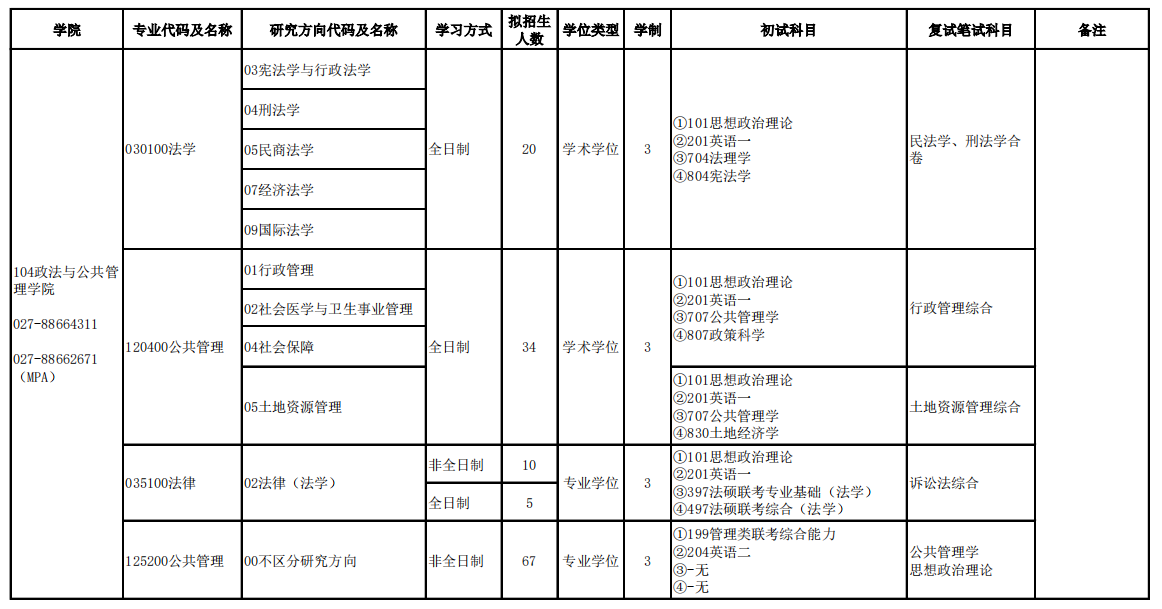 湖北大学考研辅导班:2020年硕士研究生招生政法与公共管理学院专业目录