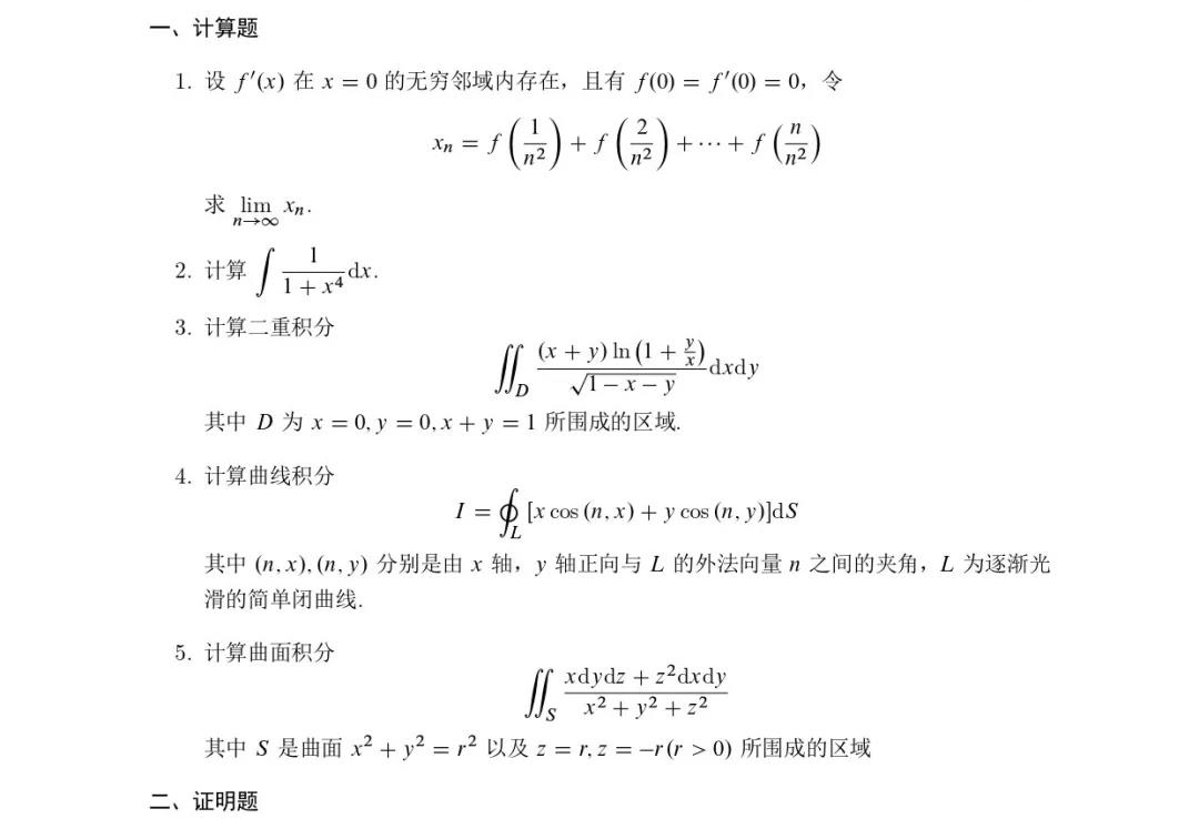 四川大学2020年数学分析652专业课初试真题