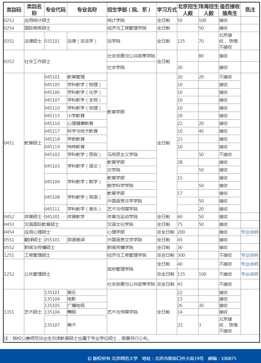 北师大考研辅导班:2020年北师大专业学位硕士研究生招生专业一览表