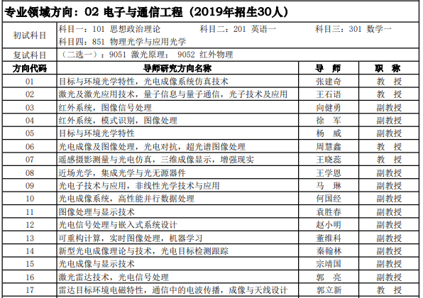 西安电子科技大学考研辅导班:2020西安电子科技大学光学工程招生专业目录