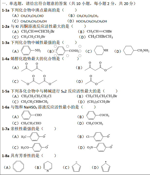 暨南大学考研辅导班:暨南大学2019年812有机化学A考研真题