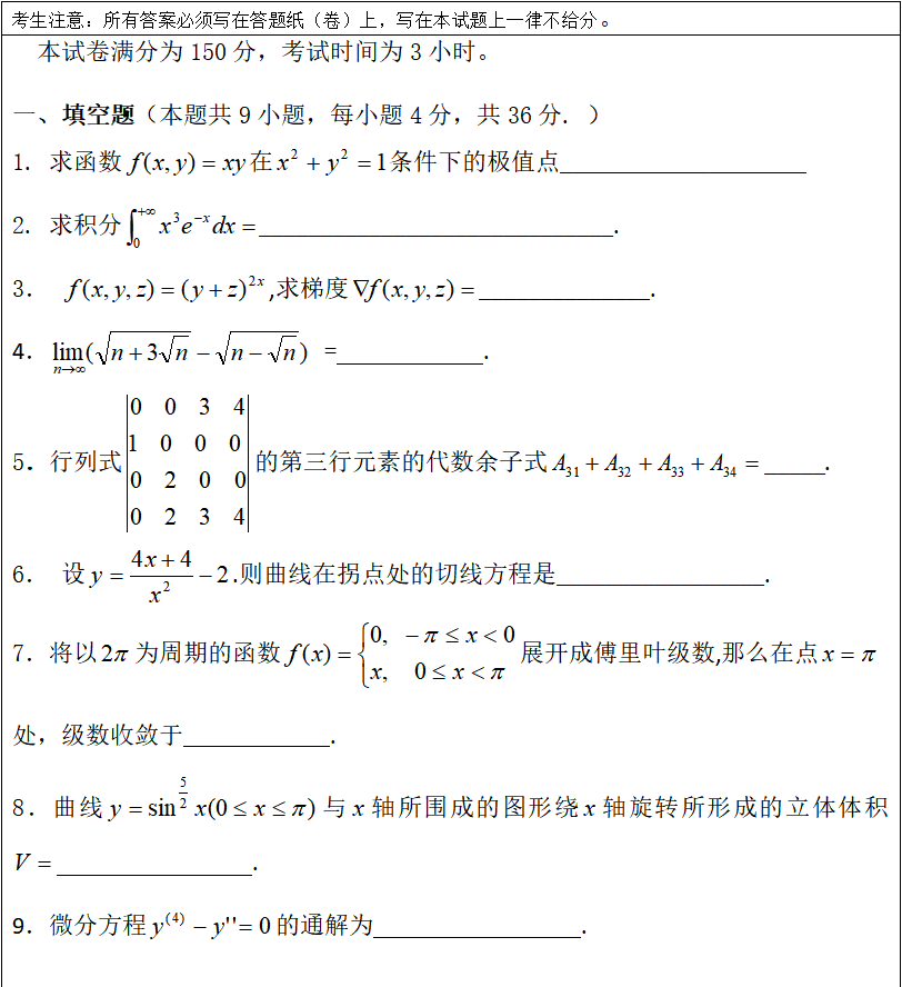 考试科目名称:601 高等数学 (A卷)