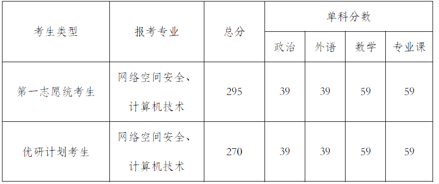 备注:有资格进入复试的“优研计划”学生均须参加学院组织的复试,复试合格即可拟录取。复试合格标准:机试、笔试和面试总分需达到300分。