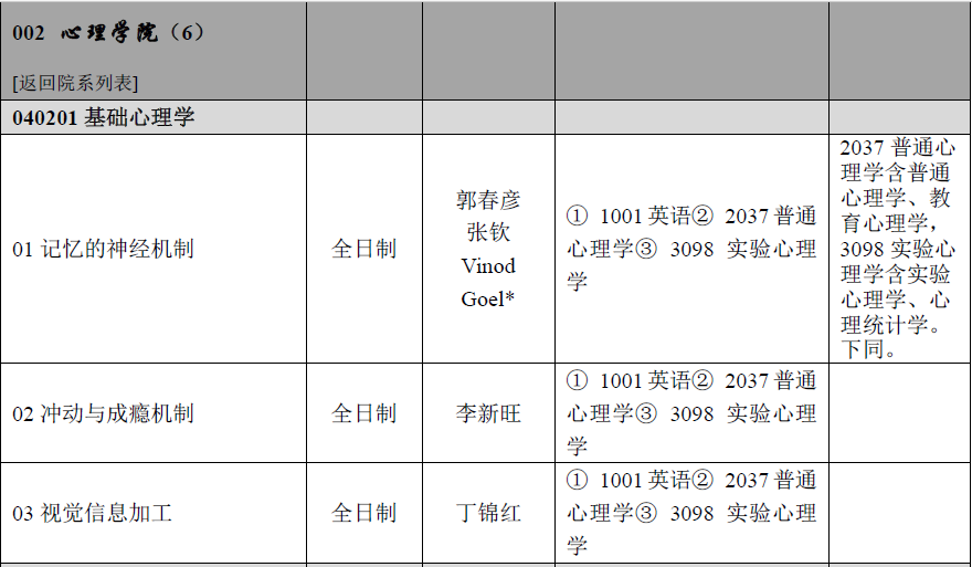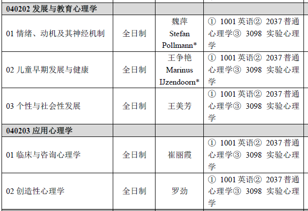 首师大考研辅导班:首师大2020年心理学院博士研究生招生专业目录及招生人数