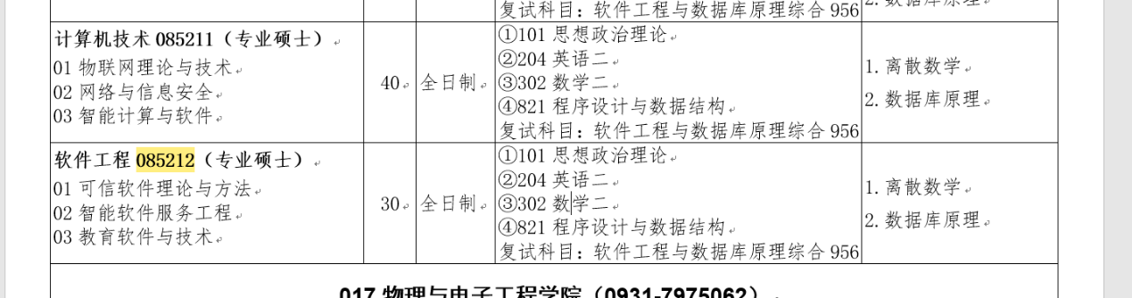 西北师大的复试分为笔试和面试两部分,笔试考956软件工程与数据库原理综合,其中:软件工程占60%,数据库原理占40%。