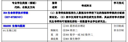 2020 年华中农业大学硕士研究生招生生命科学技术学院专业目录