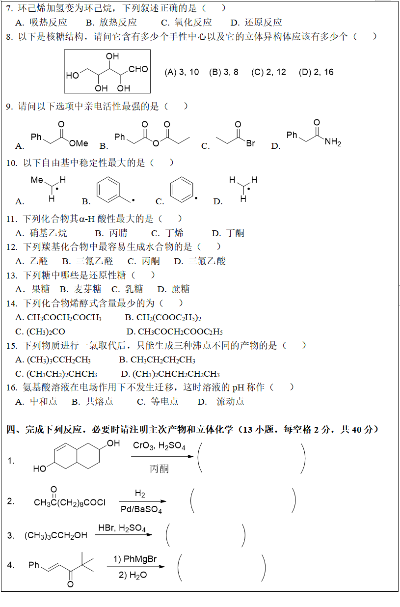 暨南大学考研辅导班:暨南大学2019年818有机化学B》A卷考研真题