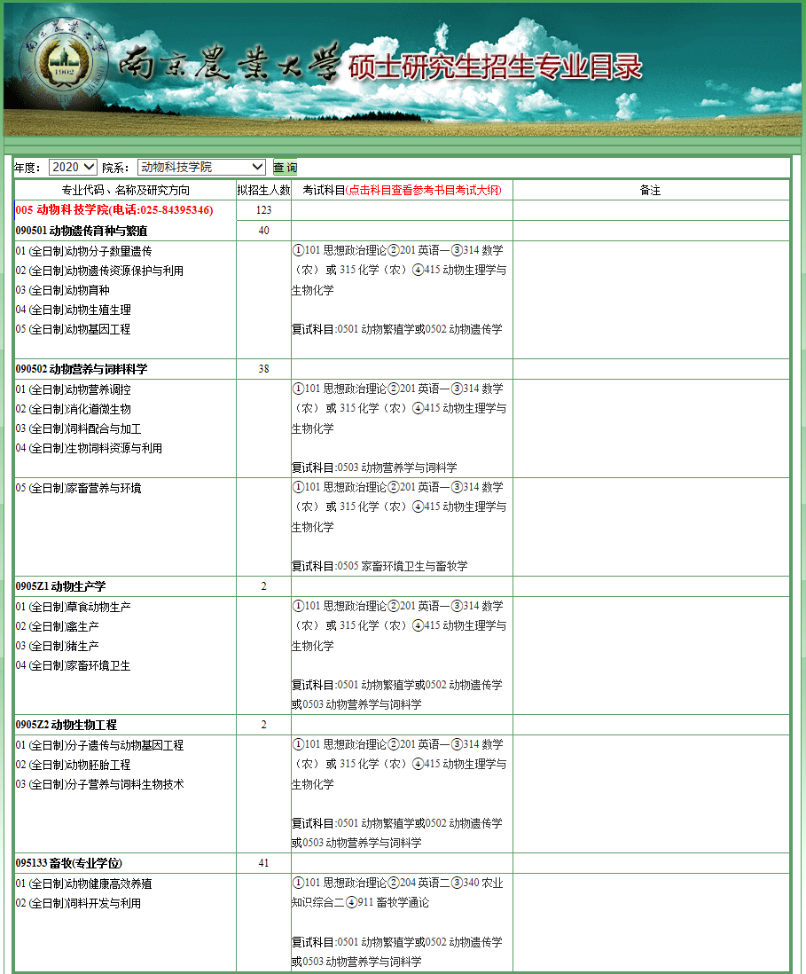 南农考研辅导班:2020年南京农业大学动物科技学院考研专业目录
