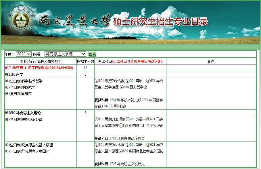 南农考研辅导班:2020年南京农业大学马克思主义学院考研专业目录