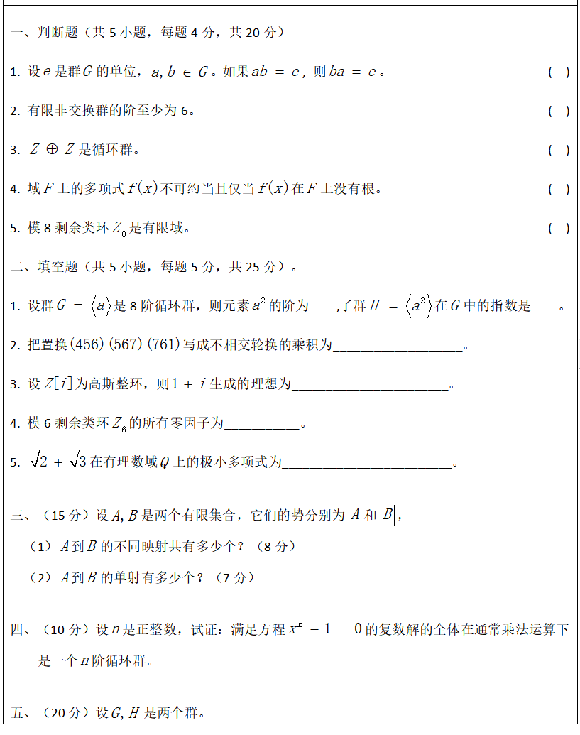 考试科目名称及代码:抽象代数 845 (A 卷)