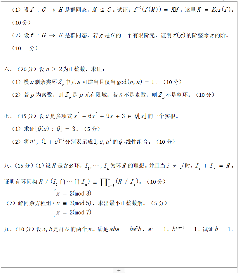 暨南大学考研辅导班:暨南大学2019年845抽象代数A考研真题