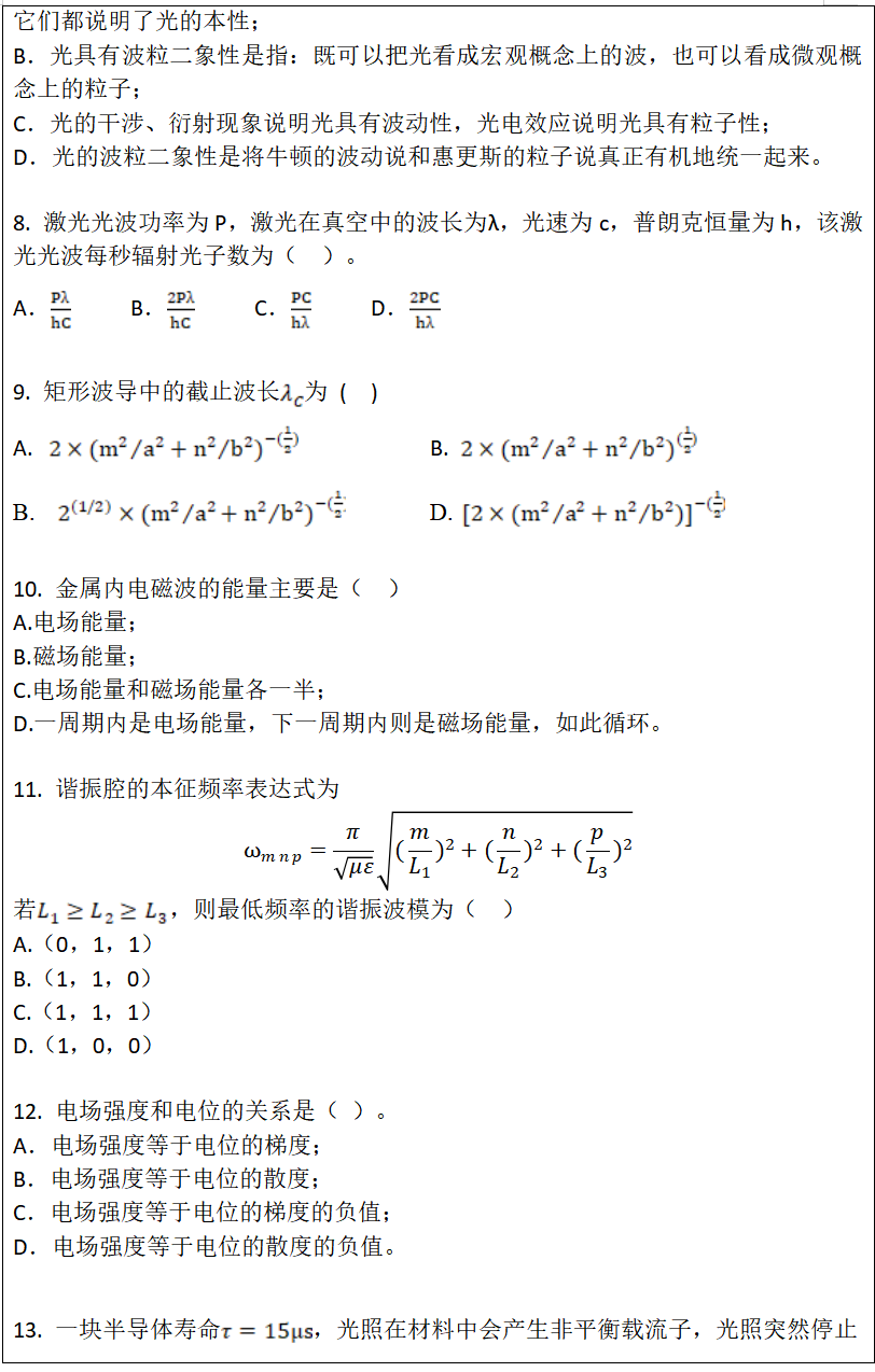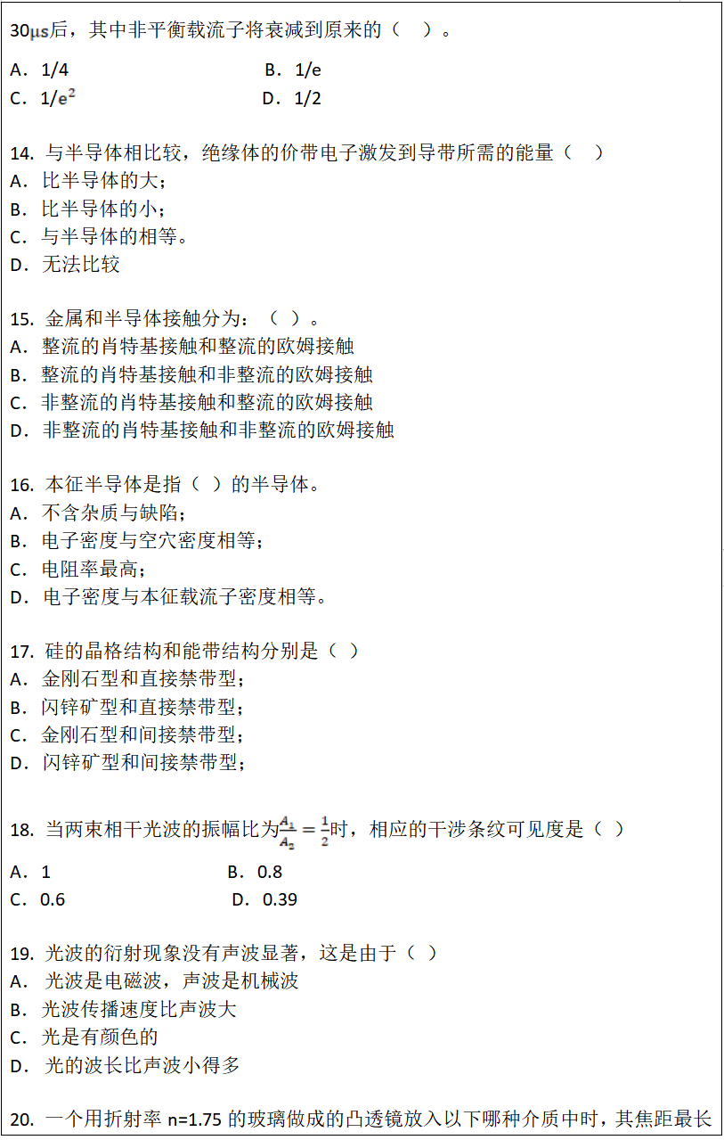 考试科目名称及代码:基础物理846