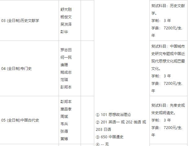 二、四川大学历史学院专业目录