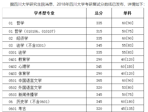 五、四川大学历史学考研2018年复试分数线