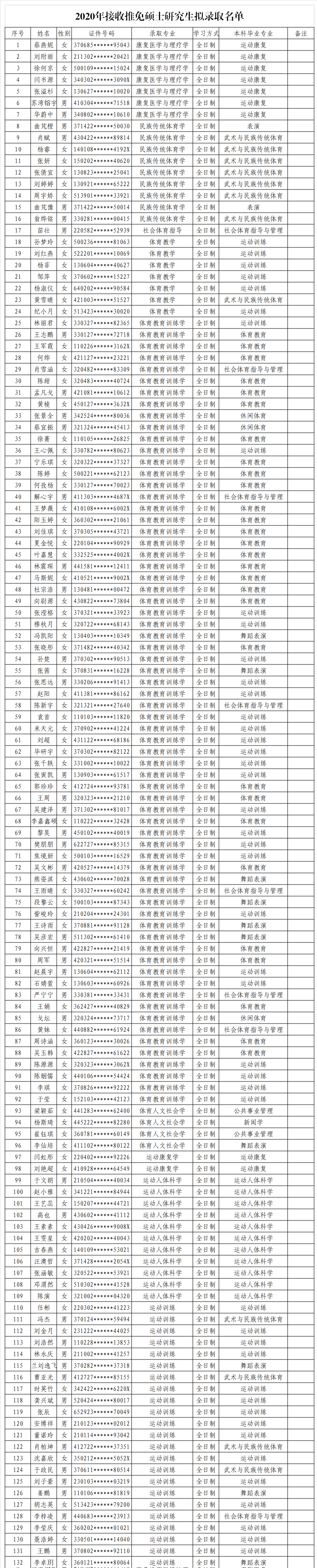 现将我校2020年接收推免硕士研究生拟录取名单进行公示,详情请见附件。