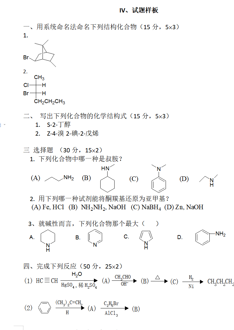 IV.试题示例