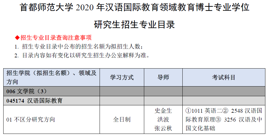 首师大考研辅导班:首都师范大学2020年汉语国际教育领域教育博士专业学位研究生招生专业及考试目录