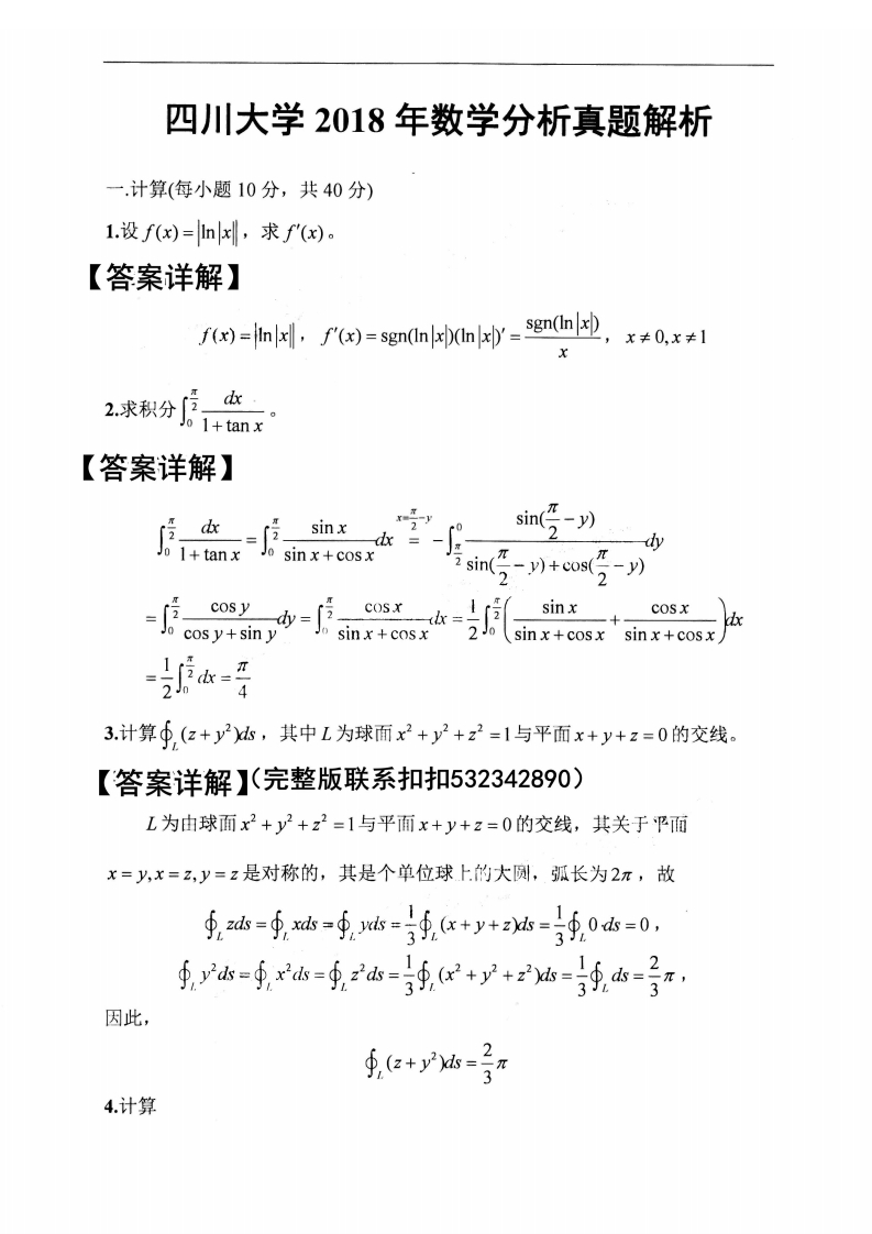 川大考研辅导:四川大学数学分析2018年考研真题及答案详解