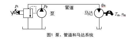 如图1所示泵、管道和马达系统。已知:泵排量Vp=45mL/r,容积效率hvp=0.95,机械效率hmp=0.95,驱动电机转速n =1470 r /min;马达的排量Vm =100 mL/r、机械效率hmm=0.95,容积效率hvm=0.95、其负载力矩Tm =345N×m;不计泵出口至马达进口管道的能量损失。试求: