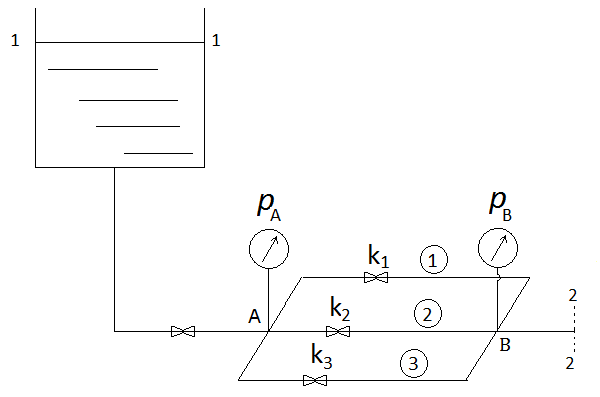 2、(2分)如下图1所示的管路系统中,保持高位槽1-1液面恒定,将支路③上的阀门k3关小,则压力表读数pA( )。