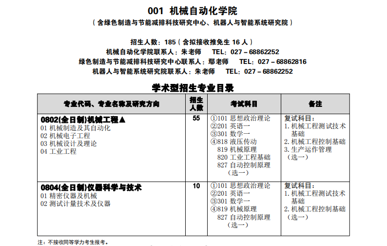 武科大考研辅导班:2020年武汉科技大学机械自动化学院考研专业目录