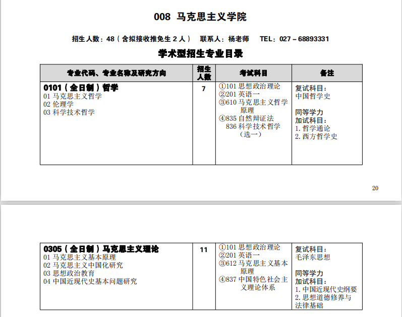 武科大考研辅导班:2020年武汉科技大学马克思主义学院考研专业目录