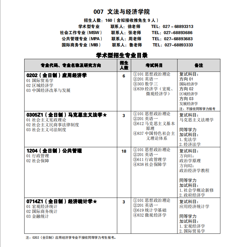 武科大考研辅导班:2020年武汉科技大学文法与经济学院考研专业目录