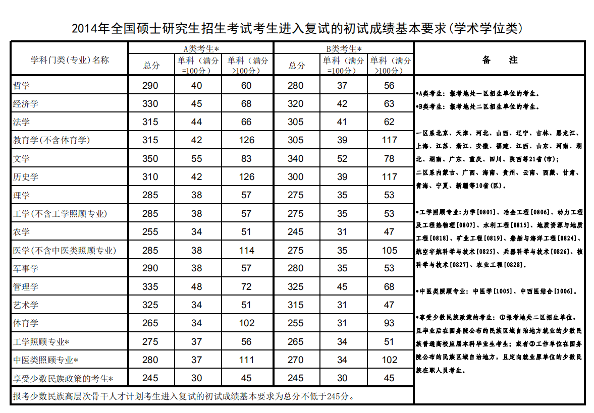 新祥旭考研辅导班:2014年全国学术型复试分数线