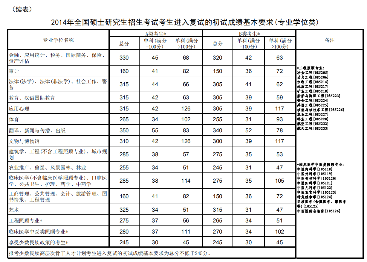 新祥旭考研辅导班:2014年全国专业学位复试分数线