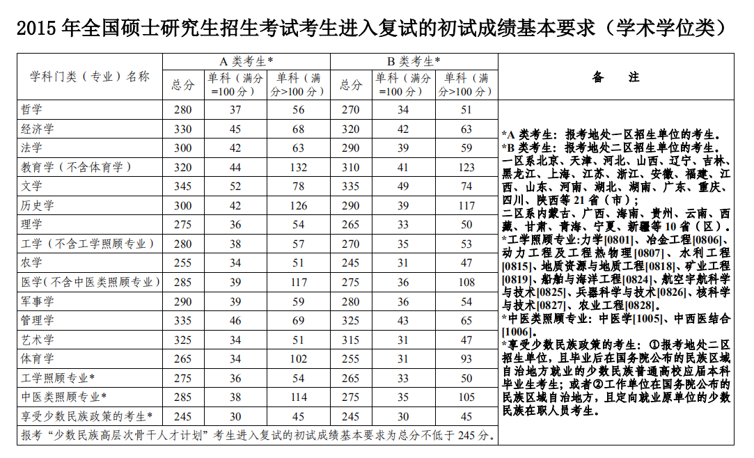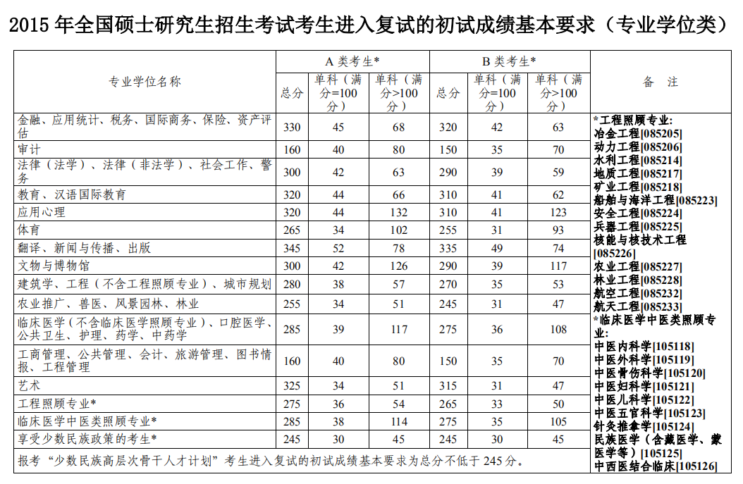 新祥旭考研辅导班:2015年全国复试分数线