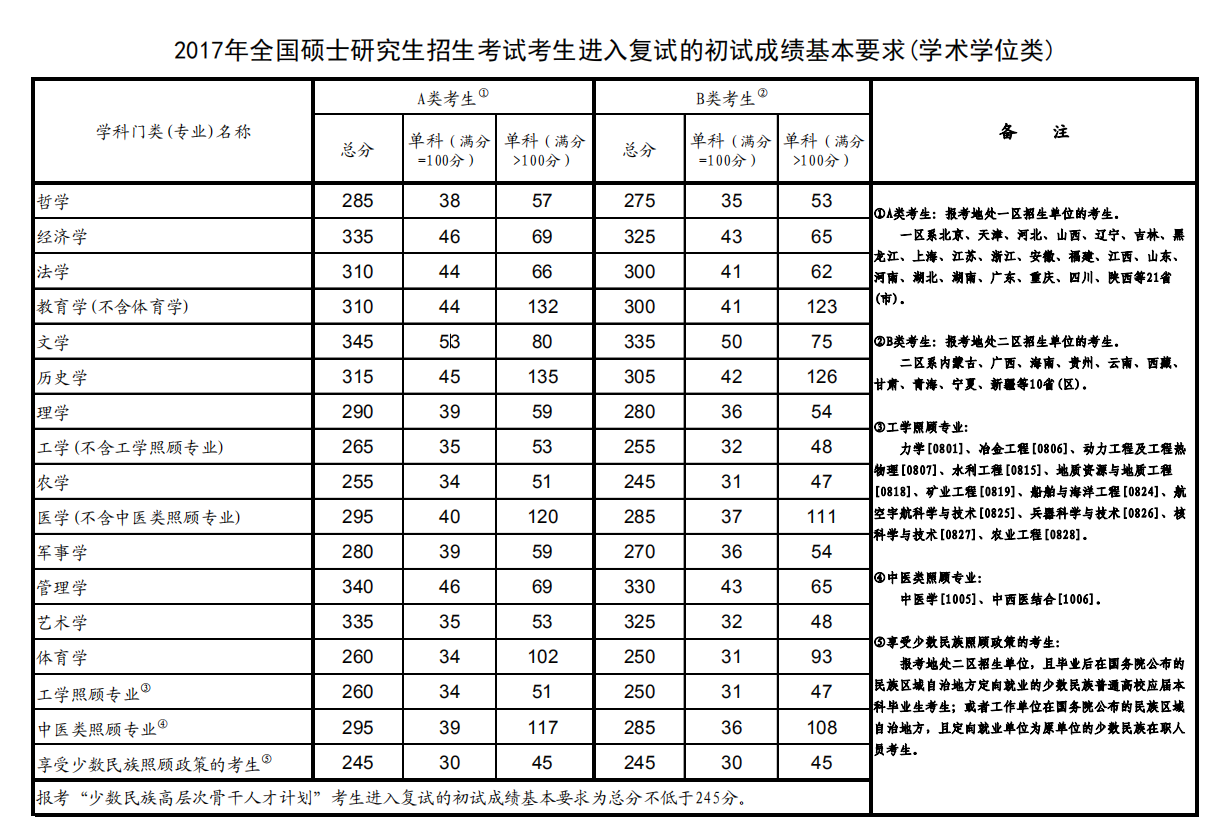 新祥旭考研辅导班:2017年全国硕士研究生招生考试考生进入复试的初试成绩基本要求(学术学位类)