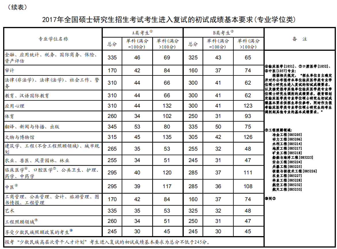 新祥旭考研辅导班:2017年全国硕士研究生招生考试考生进入复试的初试成绩基本要求(专业学位类)