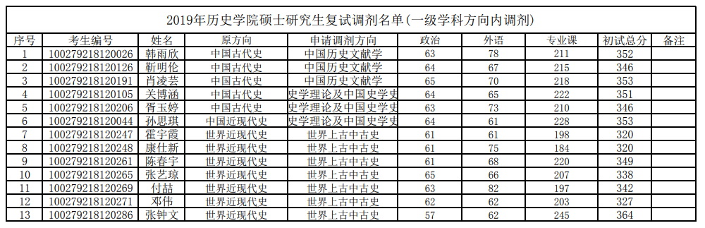 北师大考研辅导班:北师大历史学院2019年研究生考研调剂名单