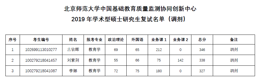 北师大考研辅导班:北师大协同中心2019年学术型硕士研究生复试调剂名单