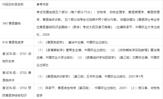 南农考研辅导班:2020年南京农业大学0952兽医考研参考书目
